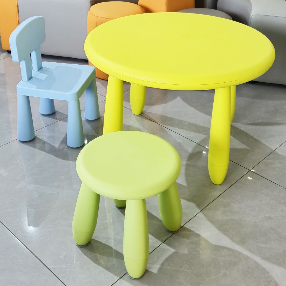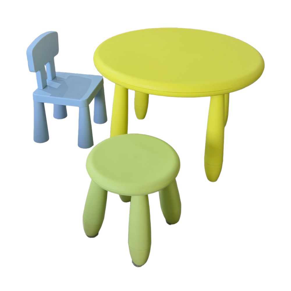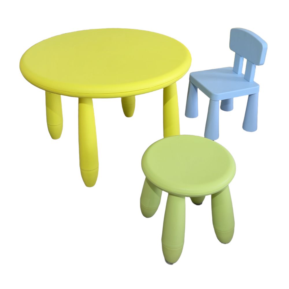 - Ширээ шар өнгөтэй, сандал ногоон ба цэнхэр өнгөтэй