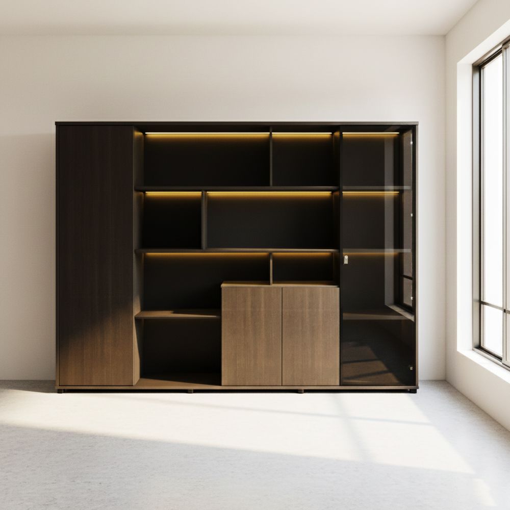 - Зүүн талдаа 50см бүхий битүү шилэн хаалгатай бөгөөд суурь нь ороод 5 тавиуртай