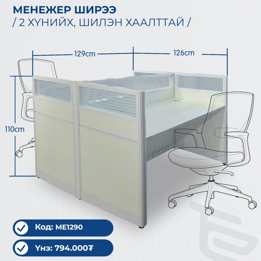 2 хүний менежер ширээ, шилэн хаалттай